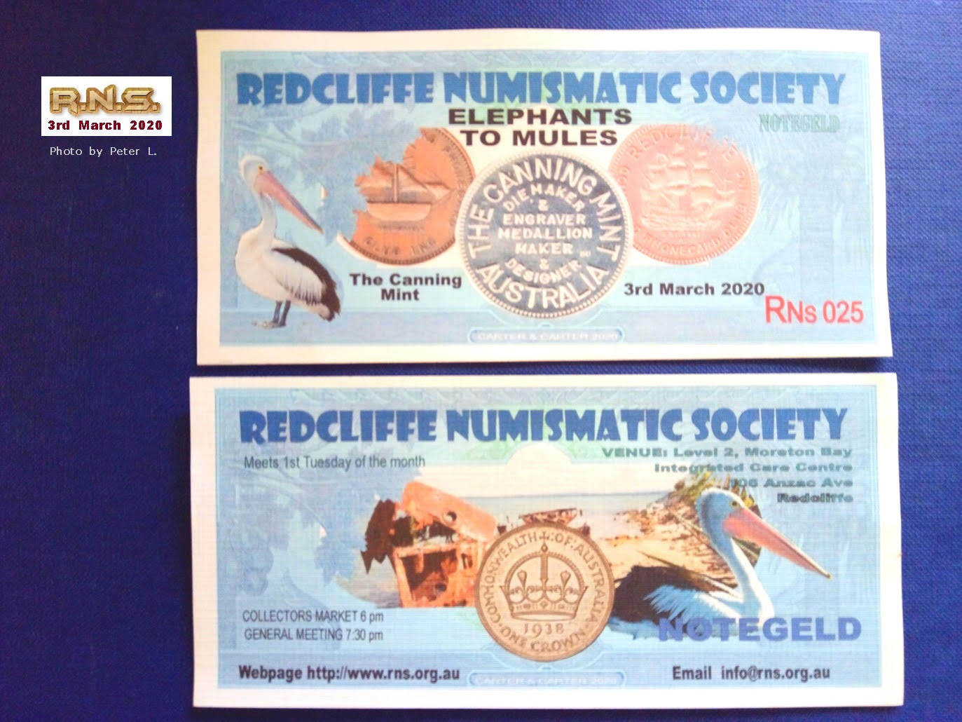 Copyright © Redcliffe Numismatic Society Inc., 2019. Original content in these pages is copyright. Apart from any use permitted under the Copyright Act, no part may be produced by any process or other exclusive right exercised without permission of the copyright holder. Redcliffe Numismatic Society Inc. takes no responsibility for the content on external Internet sites.