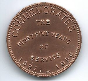 |  | 1996 - The First Five Years Commemorative Medal (Copper) | 2001 - Commemorates Ten Years 1991-2001 (Copper) |