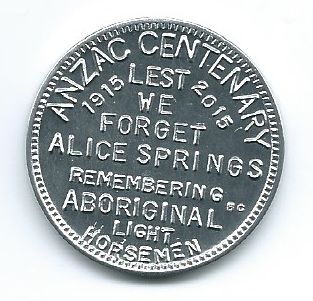 |  | 11th November,1918 The Great War Ends (Aluminium) | 2015 - Anzac Centenary - Aboriginal Light Horsemen Alice Springs (Aluminium | |